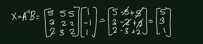 Exercise 5.6 (Artin 3.1.5) Solve completely the systems of linear equations \(AX = 0\) and \(AX = B\), where \[ A = \begin{bmatrix} 1 & 1 & 0 \\ 1 & 0 & 1 \\ 1 & -1 & -1 \end{bmatrix} \quad \text{and} \quad B = \begin{bmatrix} 1 \\ -1 \\ 1 \end{bmatrix} \]