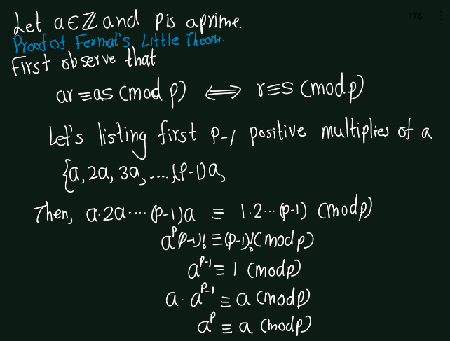 Exercise 5.8 (Artin 3.1.8) Let \(p\) be a prime integer. (a) Prove Fermat’s Theorem: For every integer \(a\), \(a^p \equiv a modulo p\). (b) Prove Wilson’s Theorem: \((p -1)!\equiv -1(modulo p)\).