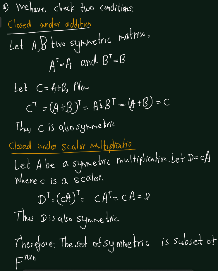 Exercise 5.13 (Artin 3.2.2) Which of the following subsets is a sub space of the vector space \(F^{n\times n}\) of \(n\times n\) matrices with coefficients in \(F\)?