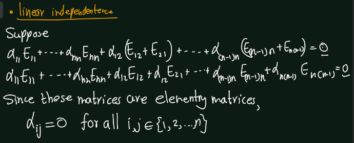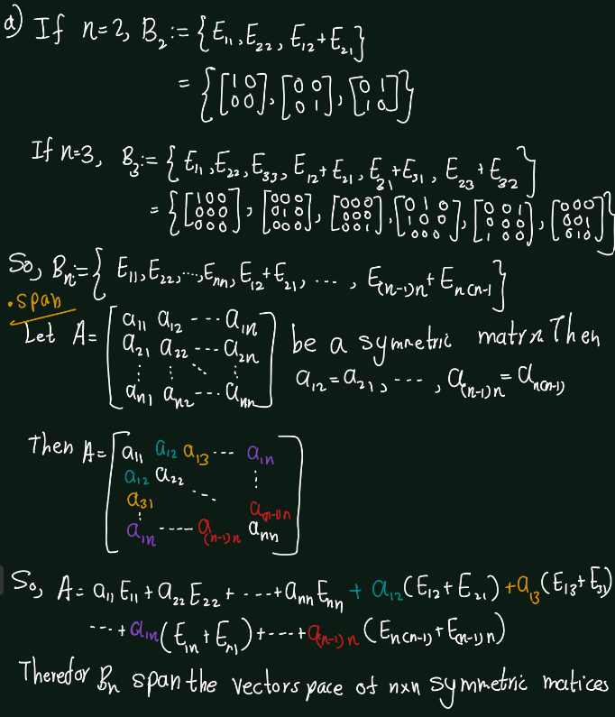 Exercise 5.14 (Artin 3.3.1) Find a basis for the space of \(n \times n\) symmetric matrices \((A^T = A)\).