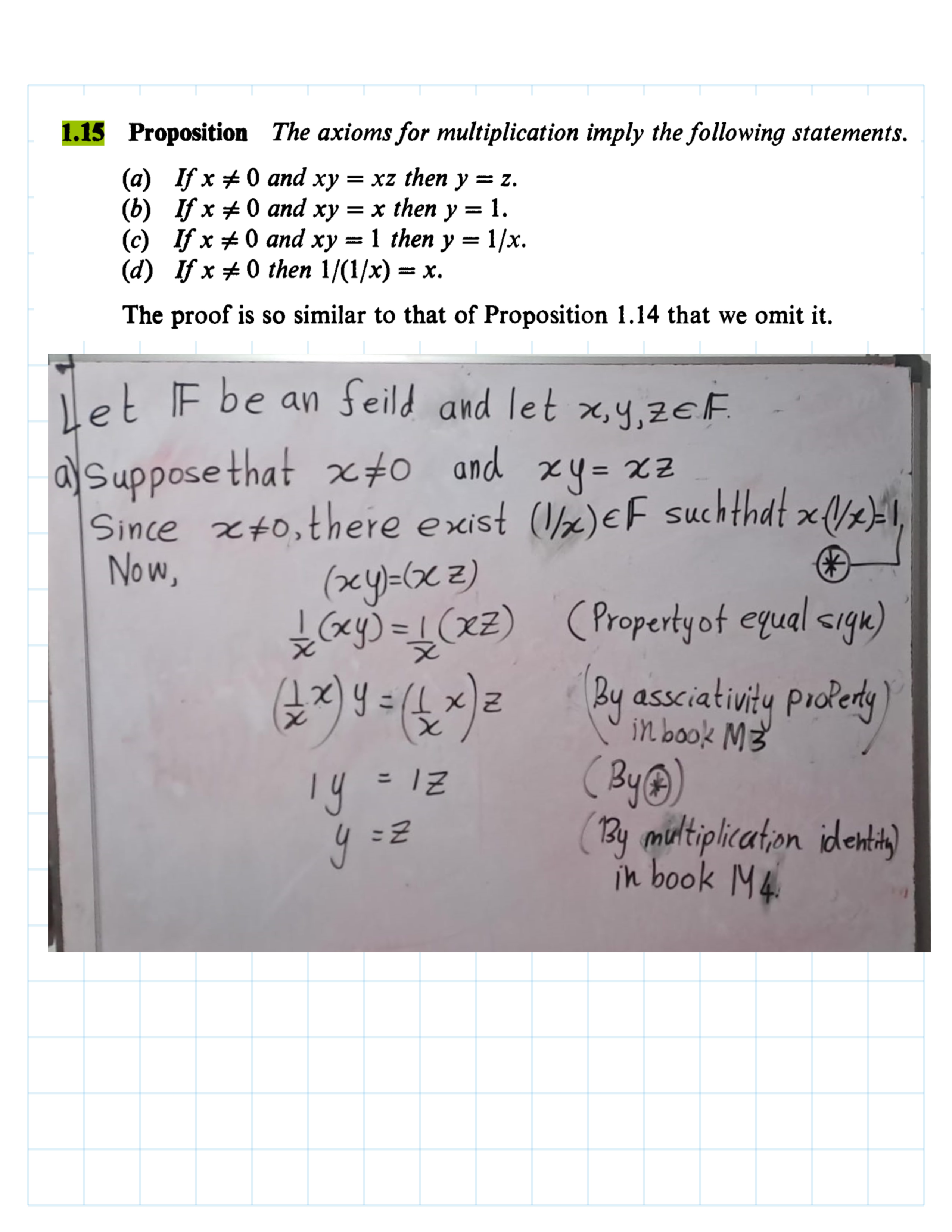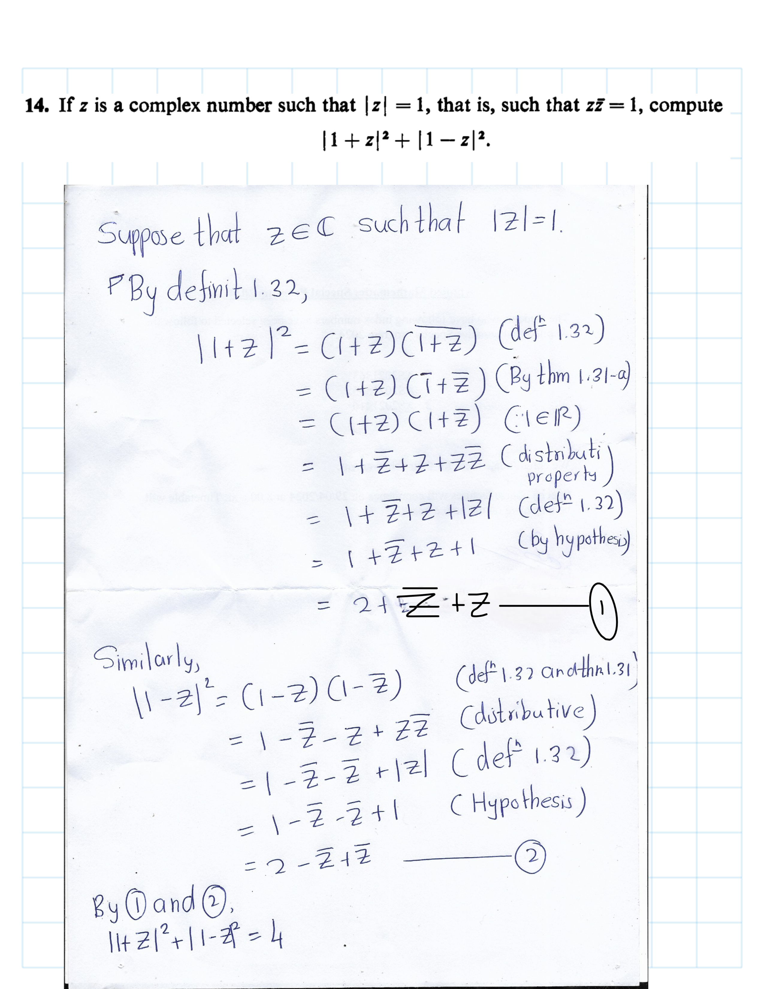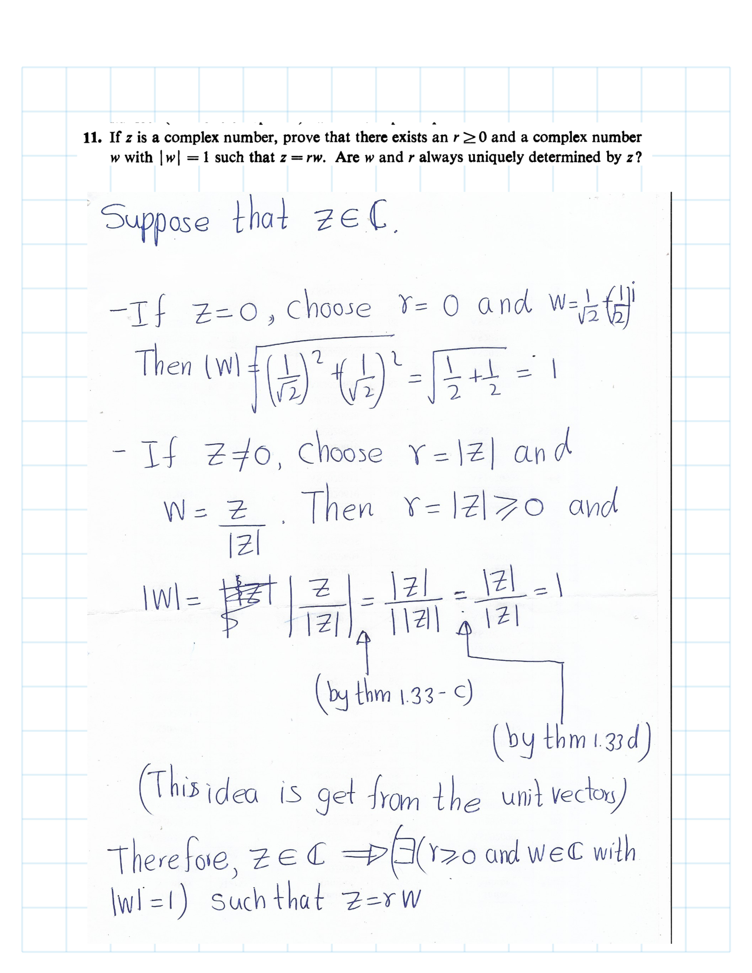 Exercise 1.1 If \(r\) is rational \(r\neq 0\) and x is irrational, prove that \(r + x\) and \(rx\) are irrational.