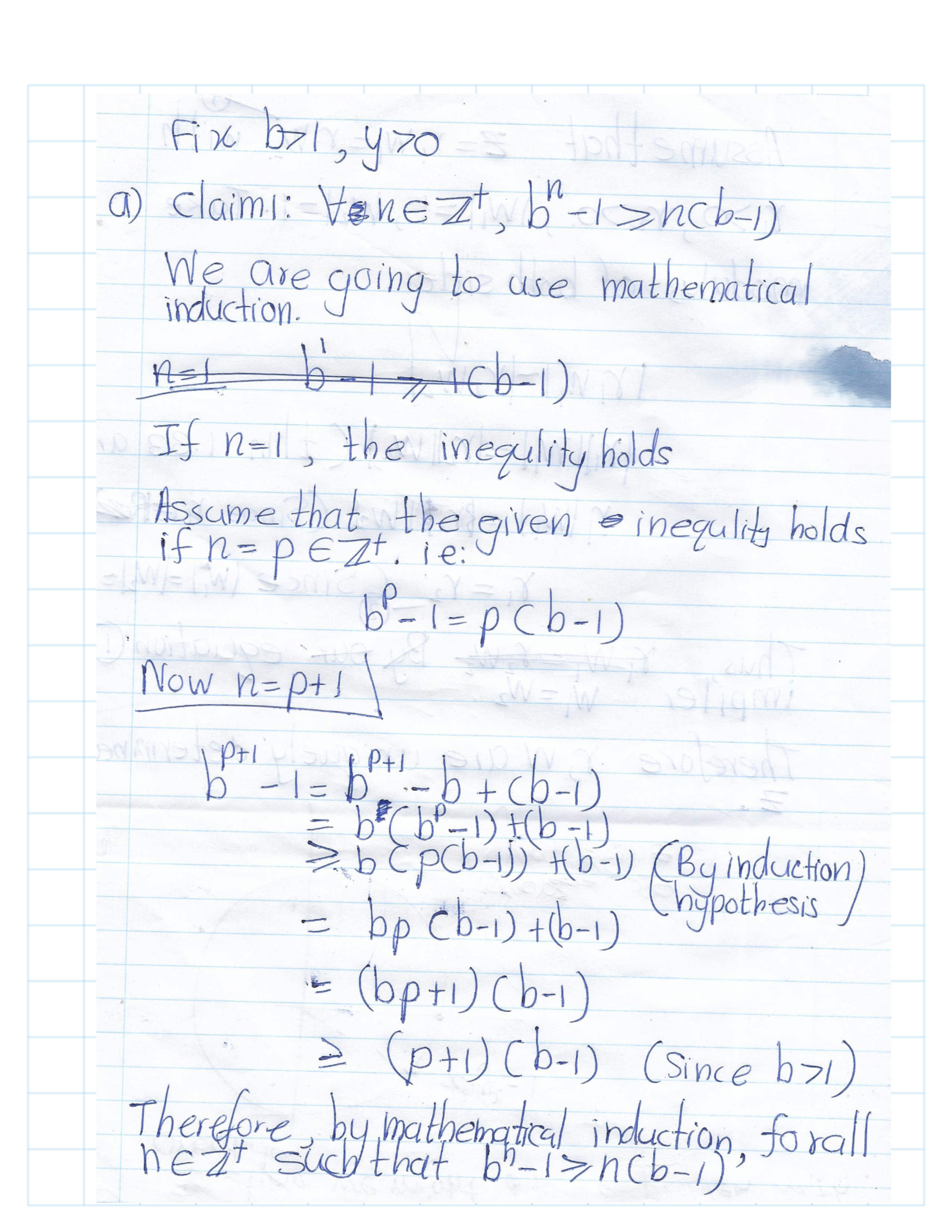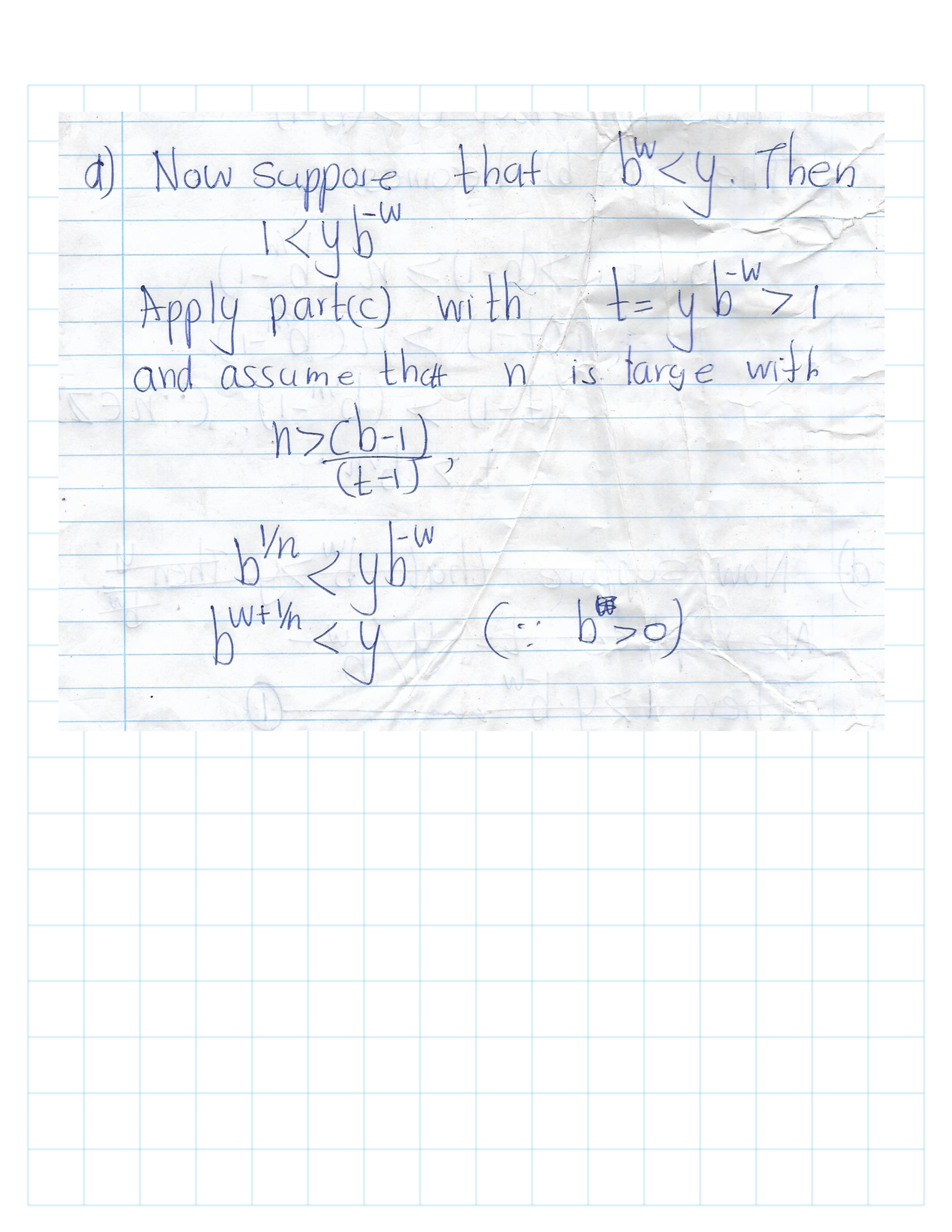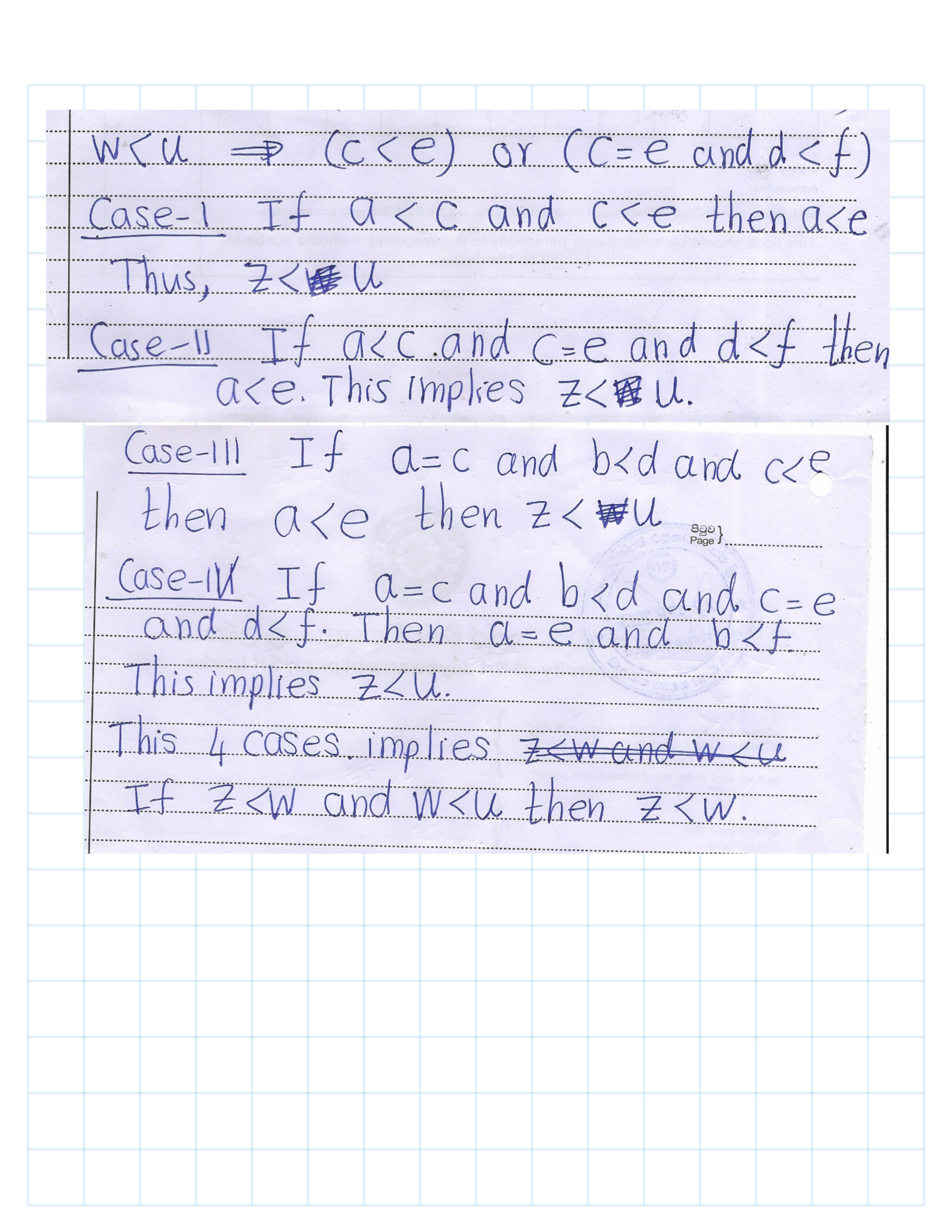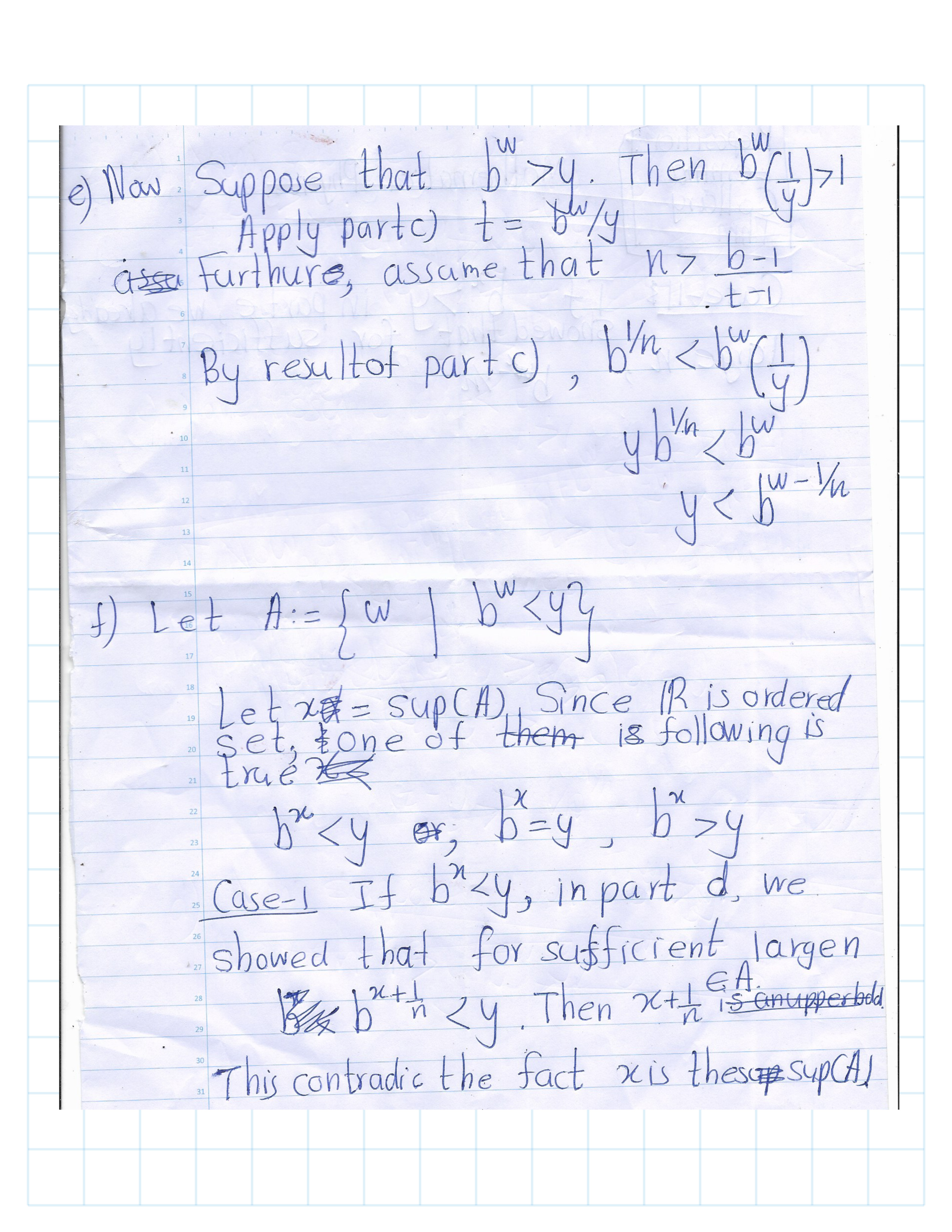 We use inderect proof. Assume contary, \(\sqrt{3}\) is rational. In other words, \[\sqrt{3}=\frac{p}{q}\text{ for some } q\in \mathbb{Z} , q\neq 0\text{ and } p,q \text{ have no comman factors.}\] Thus,\[3q^2=p^2\] Then, by above claim we can get that \(3|p\). Thus, there exists \(k \in \mathbb{Z}\) such that \(3k=p\). Thus, \[ \begin{aligned} 3q^2 &=p^2\\ 3q^2 &= (3k)^2\\ 3q^2 &= 9k^2\\ q^2 &= 3k^2 \end{aligned} \] So, both \(p\) and \(q\) have comman factor 3.This contract our assumption. Thefore, \(\sqrt(3)\) is irrational. So we are done proof of claim 2.