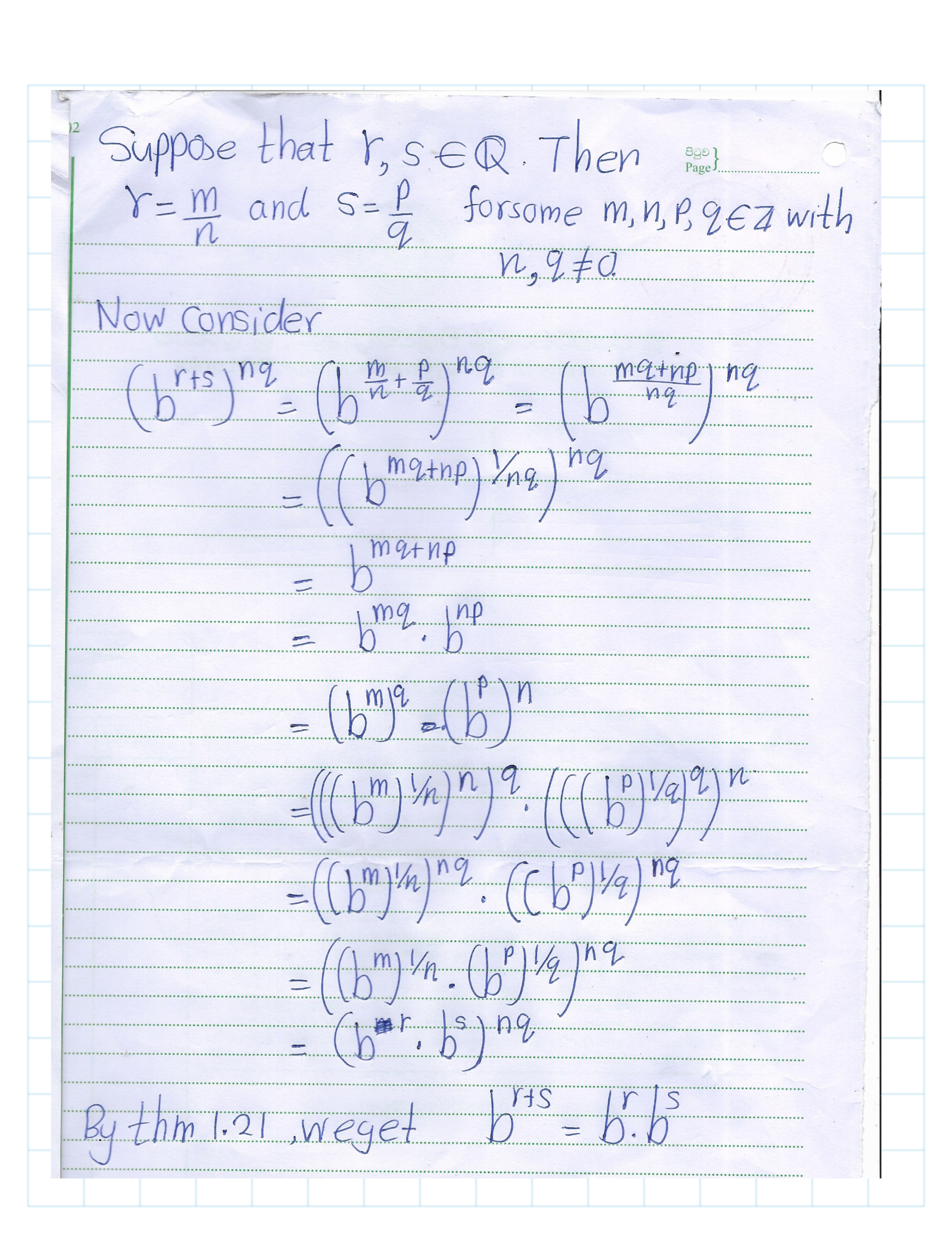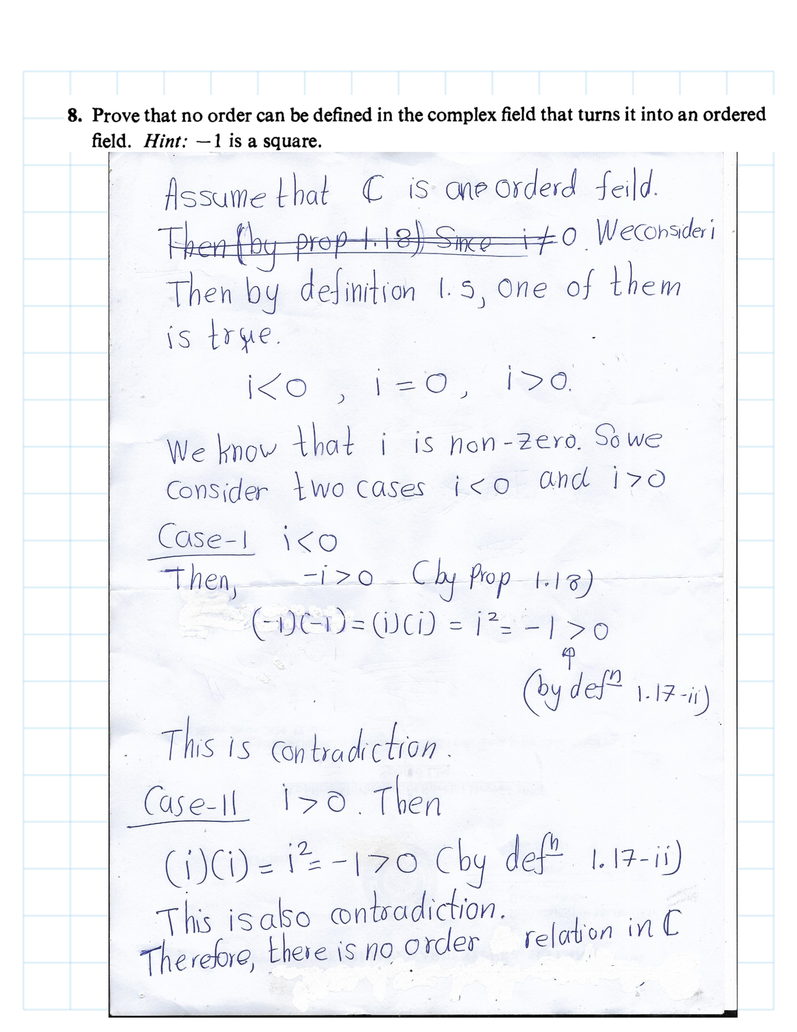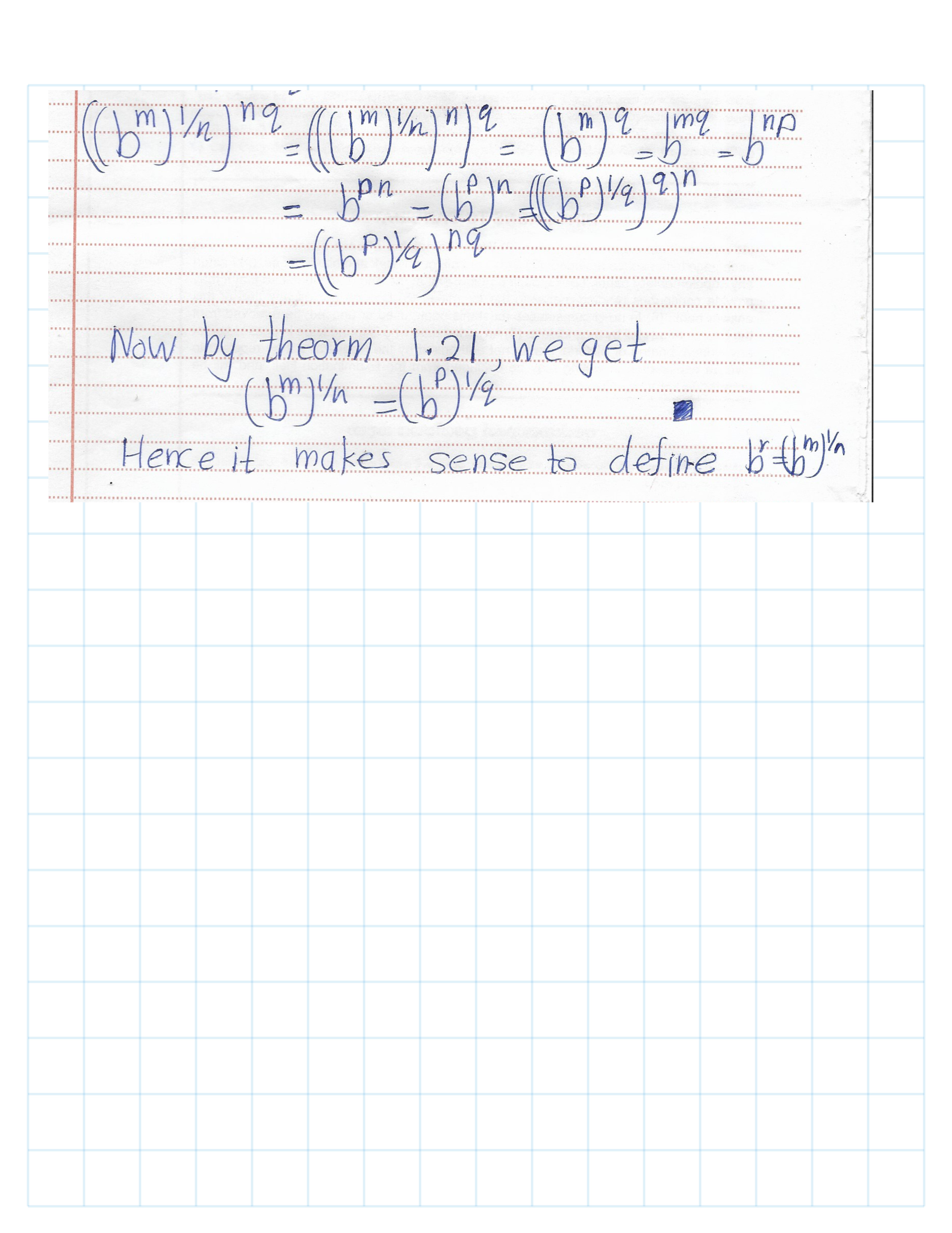 Therfore exercise 1.1 we get \(\sqrt(12)\) is irrational. Hence, there is no rational number whose square is 12.