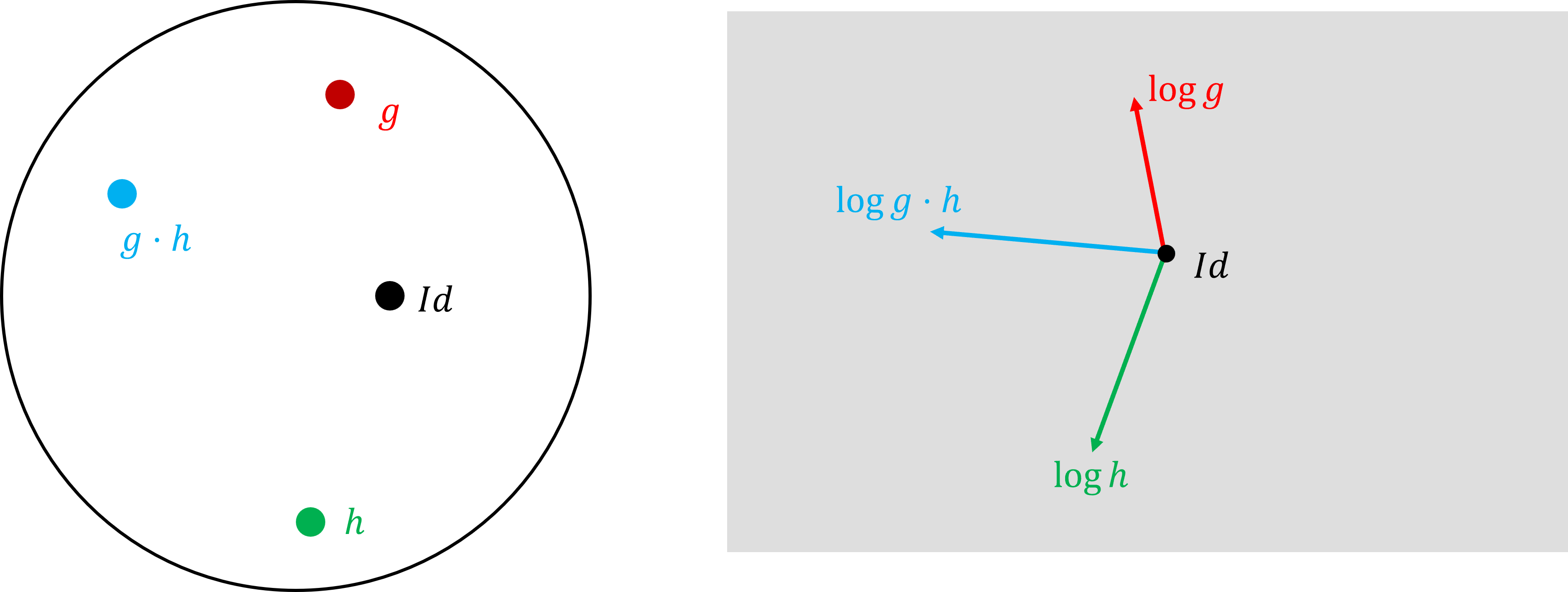 University of Manitoba ] .date[ ### 2026-02-08 ] --- <style type="text/css"> .definition-box { background-color: #eee8d5; border-left: 5px solid #dc322f; padding: 20px; margin: 20px 0; border-radius: 5px; } .theorem-box { background-color: #eee8d5; border-left: 5px solid #dc322f; padding: 20px; margin: 20px 0; border-radius: 5px; } .example-box { background-color: #fdf6e3; border-left: 5px solid #268bd2; padding: 20px; margin: 20px 0; border-radius: 5px; } .insight-box { background-color: #fdf6e3; border-left: 5px solid #859900; padding: 15px; margin: 15px 0; border-radius: 5px; } .remark-code { font-size: 18px; } .small-text { font-size: 18px; } .large-number { font-size: 48px; font-weight: bold; color: #dc322f; } .two-column { display: grid; grid-template-columns: 1fr 1fr; gap: 30px; } .column-left { padding: 20px; background-color: #eee8d5; border-radius: 8px; border-left: 3px solid #268bd2; } .column-right { padding: 20px; background-color: #eee8d5; border-radius: 8px; border-left: 3px solid #859900; } h3 { margin-top: 10px; margin-bottom: 15px; } .math-large { font-size: 24px; } .venn-area { position: relative; width: 500px; height: 300px; margin: 0 auto; } .v-circle { width: 250px; height: 250px; border-radius: 50%; position: absolute; top: 25px; display: flex; align-items: center; font-weight: bold; font-size: 22px; /* Removed background-color, added border */ border: 2px solid #002b36; background-color: transparent; } .v-left { left: 50px; justify-content: flex-start; padding-left: 30px; color: #002b36; } .v-right { right: 50px; justify-content: flex-end; padding-right: 20px; color: #002b36; } .v-label { position: absolute; top: 50%; left: 50%; transform: translate(-50%, -50%); font-weight: bold; font-size: 26px; color: #dc322f; /* Using your theme's red for the central label to make it pop */ text-align: center; z-index: 10; line-height: 1.1; } </style> # Table of Contents .large[ 1. **Introduction to Lie Groups** *Definition and basic properties* 2. **Examples of Lie Groups** *Classical groups and matrix groups* 3. **Lie Algebras** *The tangent space perspective* 4. **The Exponential Map** *Connecting groups and algebras* 5. **Applications** *Physics and geometry* ] --- class: inverse, center, middle # What Are Lie Groups? ### Combining Geometry and Algebra <img src="https://upload.wikimedia.org/wikipedia/commons/thumb/1/14/E8Petrie.svg/330px-E8Petrie.svg.png" style="width: 300px; margin-top: 20px;" /> .footnote[Image Credit: Wikeipedia] --- # Definition: Lie Group .definition-box[ **DEFINITION** A **Lie group** is a smooth manifold `\(G\)` which is also a group, such that: 1. The group multiplication map is smooth: `\(\mu: G \times G \to G, \quad (g,h) \mapsto gh\)` 2. The inverse map is smooth: `\(\iota: G \to G, \quad g \mapsto g^{-1}\)` ] .insight-box[ 💡 **Key Insight** Lie groups blend continuous symmetry (manifold structure) with algebraic operations (group structure). ] --- # Intuitive Understanding .two-column[ .column-left[ ### As a Manifold - Smooth, continuous space - Has tangent vectors - Locally looks like `\(\mathbb{R}^n\)` ] .column-right[ ### As a Group - Multiplication is smooth - Has identity and inverses - Algebraic structure ] ] <div class="venn-area"> <div class="v-circle v-left" style="border: 2px solid #586e75;">Groups</div> <div class="v-circle v-right" style="border: 2px solid #586e75;">Manifolds</div> <div class="v-label">Lie<br>Groups</div> </div> <br clear="all"> --- # Example 1: The Circle Group `\(S^1\)` <!-- .example-box[ Let `\(G = \mathbb{R} \times \mathbb{R} \times S\)`, equipped with the group operation `$$(x_1, y_1, \lambda_1) \cdot (x_2, y_2, \lambda_2) = (x_1 + x_2,\, y_1 + y_2,\, e^{ix_1y_2}\lambda_1 \lambda_2). \text{ and }$$` `$$(x,y,\lambda)^{-1}=\left(-x,\; -y,\; e^{ixy}\lambda^{-1}\right)$$` Then `\(G\)` is a Lie group. ]--> .example-box[ **EXAMPLE 1** The unit circle in the complex plane: `\(S^1 = \{z \in \mathbb{C} : |z| = 1\}=\{e^{i\theta}:0\leq \theta <2\pi\}\)` - **Group operation:** `\(z_1 \cdot z_2 = e^{i\theta_1} \cdot e^{i\theta_2} = e^{i(\theta_1+\theta_2)}\)` - **Inverse:** `\((e^{i\theta})^{-1} = e^{-i\theta}\)` ] .insight-box[ **Geometric View:** Multiplication = Rotation Rotating by angle `\(\theta_1\)` then by angle `\(\theta_2\)` equals rotating by angle `\(\theta_1 + \theta_2\)` `\(S^1\)` models rotational symmetry! ] --- # Example 2: General Linear Group `\(GL(n,\mathbb{R})\)` .example-box[ **EXAMPLE 2** The group of invertible `\(n \times n\)` real matrices: `$$GL(n,\mathbb{R}) = \{A \in \text{Mat}(n \times n, \mathbb{R}) : \det(A) \neq 0\}$$` ] **Properties:** - **Manifold structure:** Open subset of `\(\mathbb{R}^{n^2}\)` (condition `\(\det(A) \neq 0\)` defines open set) - **Group operation:** Matrix multiplication - **Identity:** `\(I_n\)` (identity matrix) - **Inverse:** `\(A^{-1}\)` (matrix inverse) - **Dimension:** `\(n^2\)` as a manifold --- <!--- # Classical Lie Groups | Symbol | Name | Definition | Dimension | |--------|------|------------|-----------| | `\(SL(n,\mathbb{R})\)` | Special Linear Group | Matrices with `\(\det(A) = 1\)` | `\(n^2 - 1\)` | | `\(O(n)\)` | Orthogonal Group | `\(A^T A = I\)` (preserves inner product) | `\(\frac{n(n-1)}{2}\)` | | `\(SO(n)\)` | Special Orthogonal Group | `\(O(n)\)` with `\(\det(A) = 1\)` (rotations) | `\(\frac{n(n-1)}{2}\)` | | `\(U(n)\)` | Unitary Group | `\(A^* A = I\)` in `\(\mathbb{C}^{n \times n}\)` | `\(n^2\)` | | `\(Sp(2n,\mathbb{R})\)` | Symplectic Group | Preserves symplectic form | `\(n(2n+1)\)` | <br> .small-text[ These groups appear throughout mathematics and physics as fundamental symmetry groups. ] ---> # Intutive Idea Cont ...  --- # Intutive Idea Cont ...  --- # Intutive Idea Cont ...  --- # Intutive Idea Cont ...  --- # Intutive Idea Cont ...  --- # Intutive Idea Cont ...  --- #Intutive Idean Cont ... <img src="pic/Picture7.png" width="50%"> -- `$$Z= X + Y + \frac{1}{2}[X,Y]+ \frac{1}{12}[X,[X,Y]]- \frac{1}{12}[Y,[X,Y]]- \frac{1}{24}[Y,[X,[X,Y]]]+ 