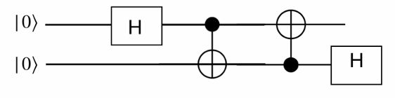 \(|\psi_3 \rangle =\frac{1}{2}\big(|00\rangle+|01\rangle+|10\rangle+|11\rangle\big) =\frac{1}{2}\begin{pmatrix}1\\1\\1\\1\end{pmatrix}\)
