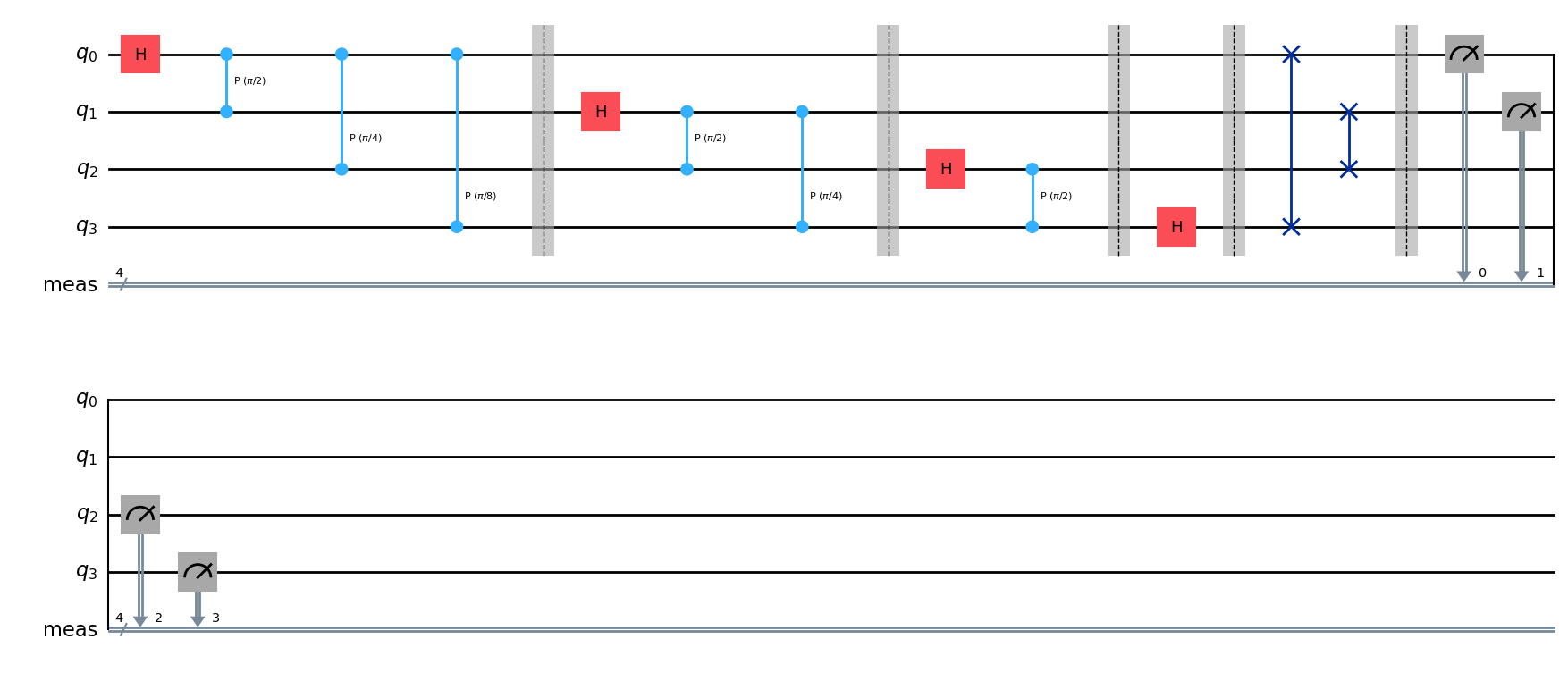Example 7.4 The circuit implementation of QFT on 4 qubits