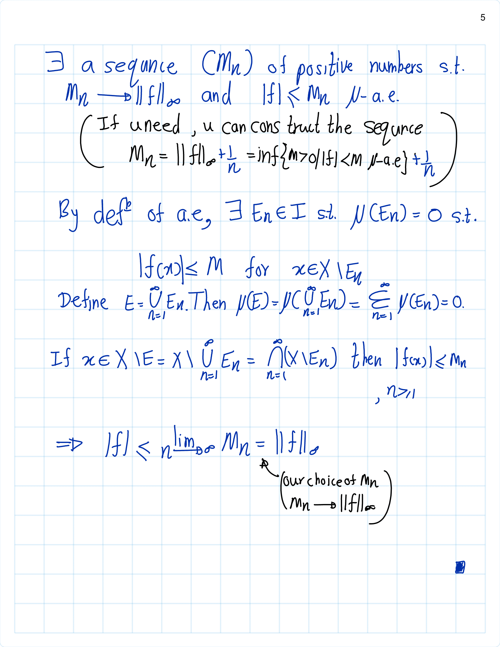 \[\mu(X \setminus E_{n,m}) = 0 \text{ and } |f_n(x) - f_m(x)| \le \|f_n - f_m\|_\infty \quad \text{for every } x \in E_{n,m}~(\text{ By lemma \@ref(lem:lem111))}. \]