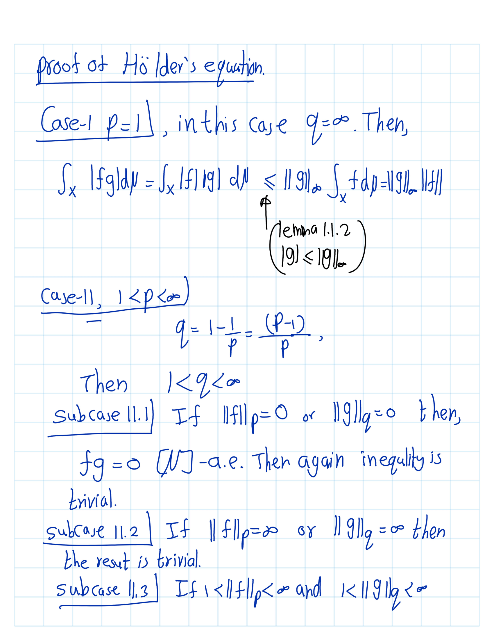 Theorem 1.1 (Holder's inequality) Fix \(1 \le p < \infty\) and let \(q\) be the conjugate exponent, i.e.