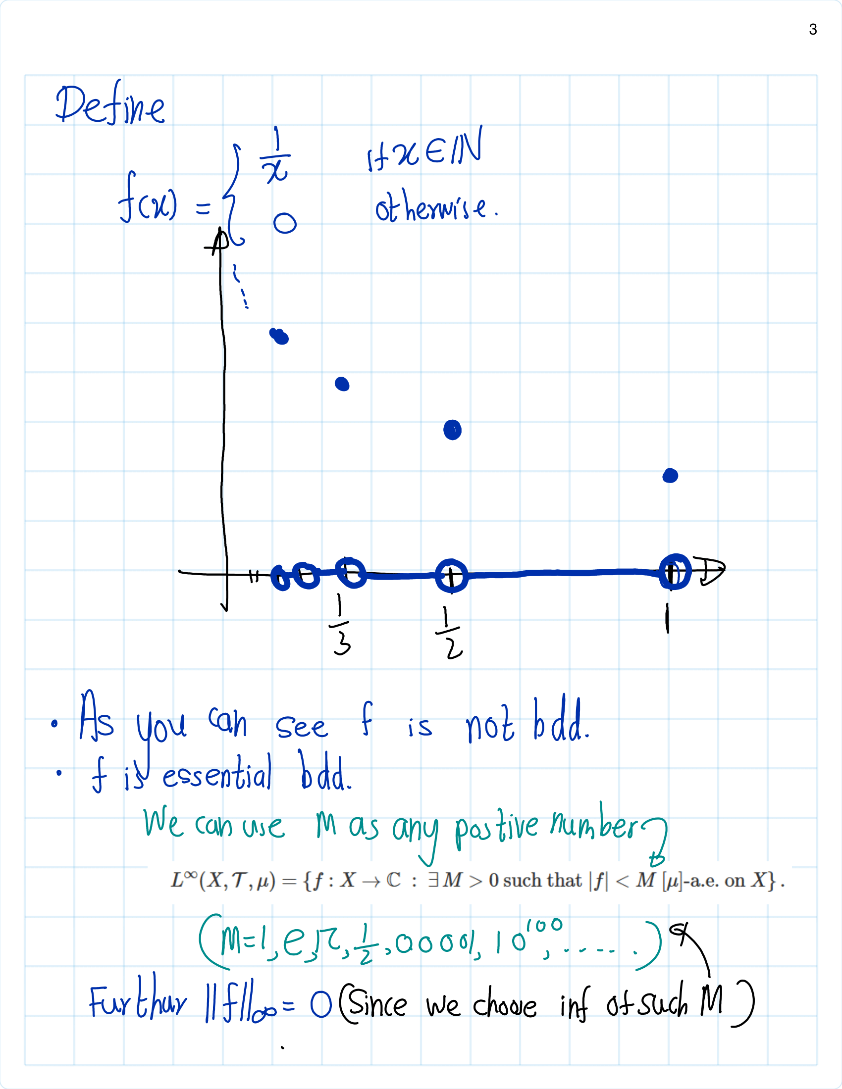 - The essential norm \(=\) \(\mathcal{L}^{\infty}\) norm of \(f=
