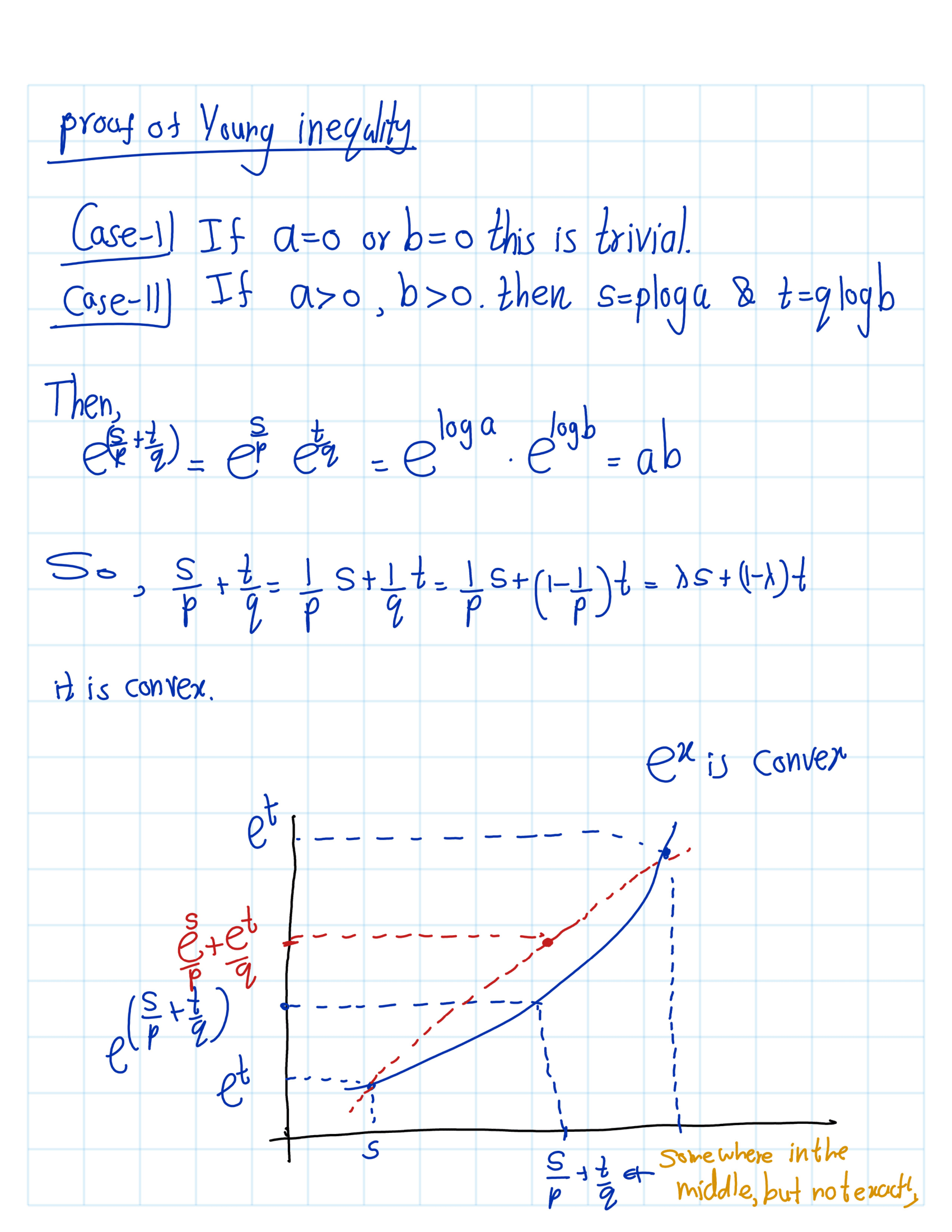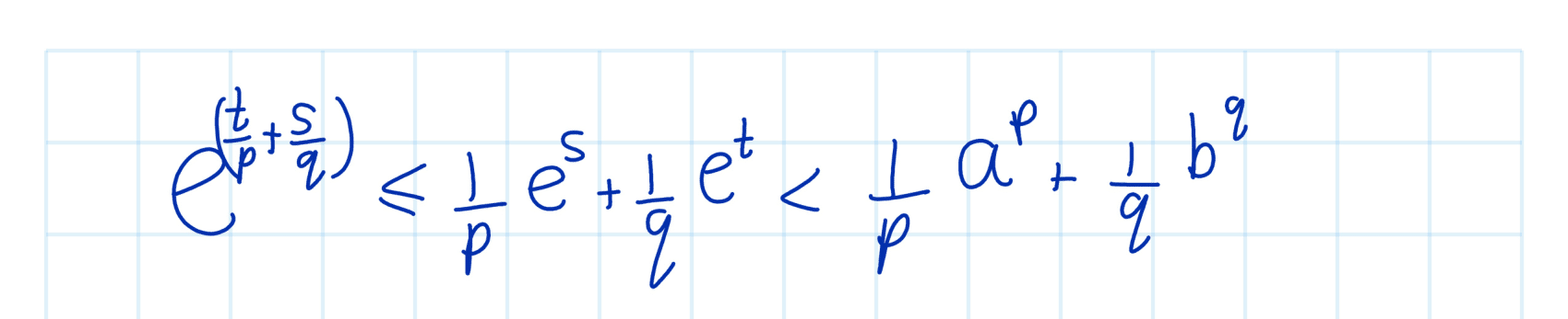 Lemma 1.3 (Young's inequality) Let \(a,b \ge 0\) and \(1 < p < \infty\). Let \(q\) be the conjugate exponent, i.e.